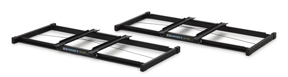 - Construction: Each slide consists of a base with two tracks and a wheeled carriage that runs on the tracks. Light bungee cord tension keeps the carriage centered on the base.