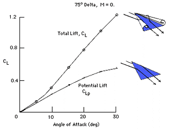 Aircraft designed to fly at greater angles of attack use a delta wing: a wing shaped like a triangle when viewed from above. Many delta wings additionally feature tapered leading edges, which are used to combat the increased drag that occurs as the angle of attack increases (during a dog fight, for example). These tapered leading edges affect the airflow over the wing in a way that decreases drag and increases lift.