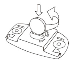 1. Using a coin, open the battery cover by turning it counterclockwise to OPEN (see image at right).