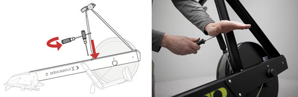 Can’t loosen the four leg screws that attach the front legs to the box arm on the Model D Indoor Rower.