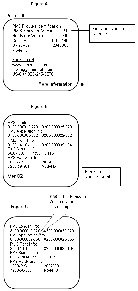 - From the Main Menu, select More Options > Utilities > Product ID. The PM3 displays the Product ID screen, which lists the firmware version the monitor is running. The Product ID screen has evolved over the years and will look like one of the following examples depending on which firmware version you have.